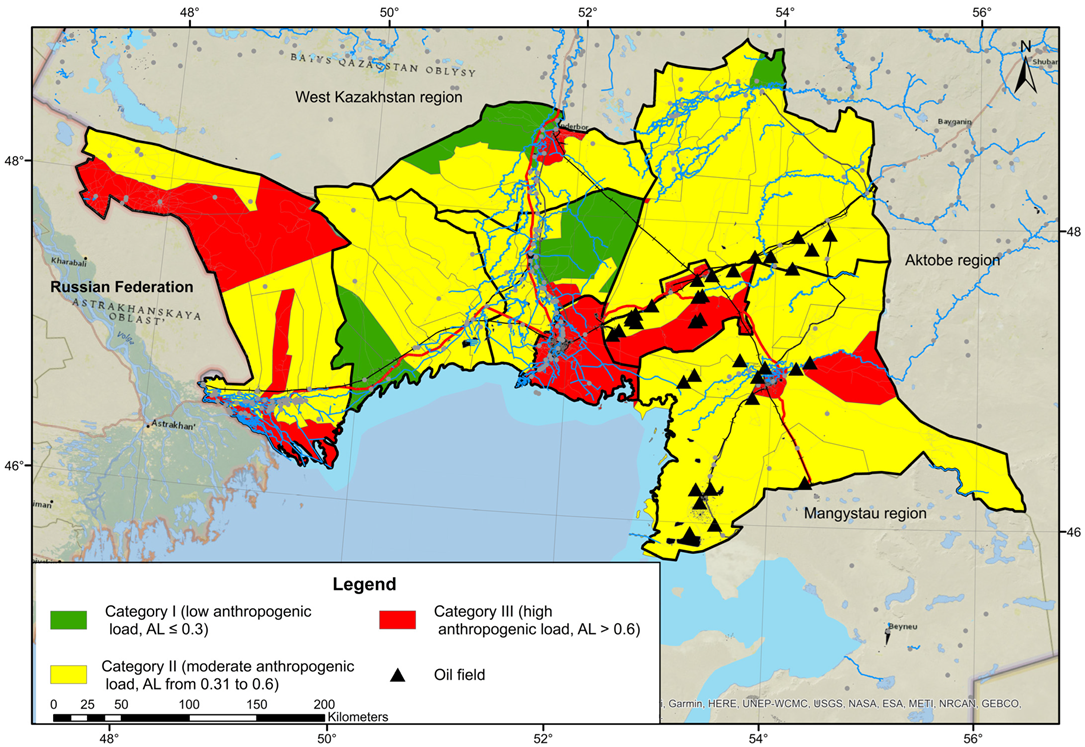 Бұл мақалада Атырау облысындағы шектен тыс құрғақшылық жағдайында жайылымдық экожүйелердің деградациясын кешенді бағалау ұсынылған. Мұнда мал басының жоғары тығыздығы, жайылымға шығу мүмкіндіктерінің шектеулілігі және жер иеленудің институционалдық бытыраңқылығы деградация қаупін күшейтеді. Зерттеудің мақсаты – жайылымдардың жай-күйіне кеңістіктік-уақыттық талдау жүргізу және тұрақты басқару стратегияларын әзірлеу үшін сыни жүктемеге ұшыраған аймақтарды анықтау. Әдістеме антропогендік жүктеменің (АЖ) көп факторлы моделіне негізделді, ол: (1) 2023 жылғы ауыл шаруашылығы статистикасын пайдалана отырып, мал басын шартты мал бірлігіне (ШМБ) ауыстыру арқылы жайылымдық жүктемені (ЖЖ) есептеу; (2) ArcGIS 10.8 бағдарламасында ядролық тығыздықты бағалау арқылы жайылым концентрациясына кеңістіктік талдау жүргізу; (3) инфрақұрылымға қолжетімділікті бағалау (қолжетімділік индексі, Ai); (4) жерді институционалдық ұйымдастырудың сандық бағасы (институционалдық индекс, Ii) сияқты компоненттерді қамтиды. Бұл кешенді тәсіл тұрақты, өтпелі және сыни шамадан тыс жүктелген аймақтарды айқындауға және тұрақты басқару үшін картографиялық негіз жасауға мүмкіндік берді. Нәтижелер көрсеткендей, су көздері мен елді мекендерден 3–5 км аралығында деградация ошақтары сақталып отыр, сонымен бірге өнімді жайылымдардың 40 %-ына жуығы пайдаланылмай қалған. Ұсынылған AL моделі экологиялық мониторинг пен Орталық Азияның құрғақ аймақтарында өңірлік жер пайдалануды жоспарлау үшін жоғары қайталанғыштық пен қолданбалы тиімділігін көрсетті.